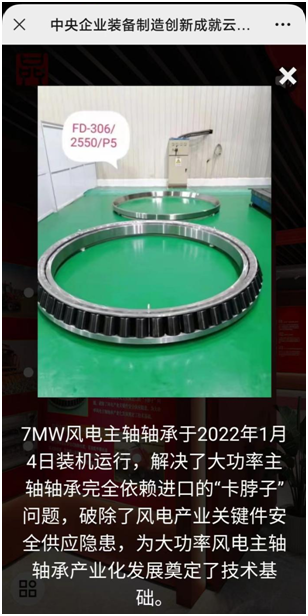 軸研所大功率風(fēng)電主軸軸承登陸中央企業(yè)裝備制造 創(chuàng)新成就云展覽
