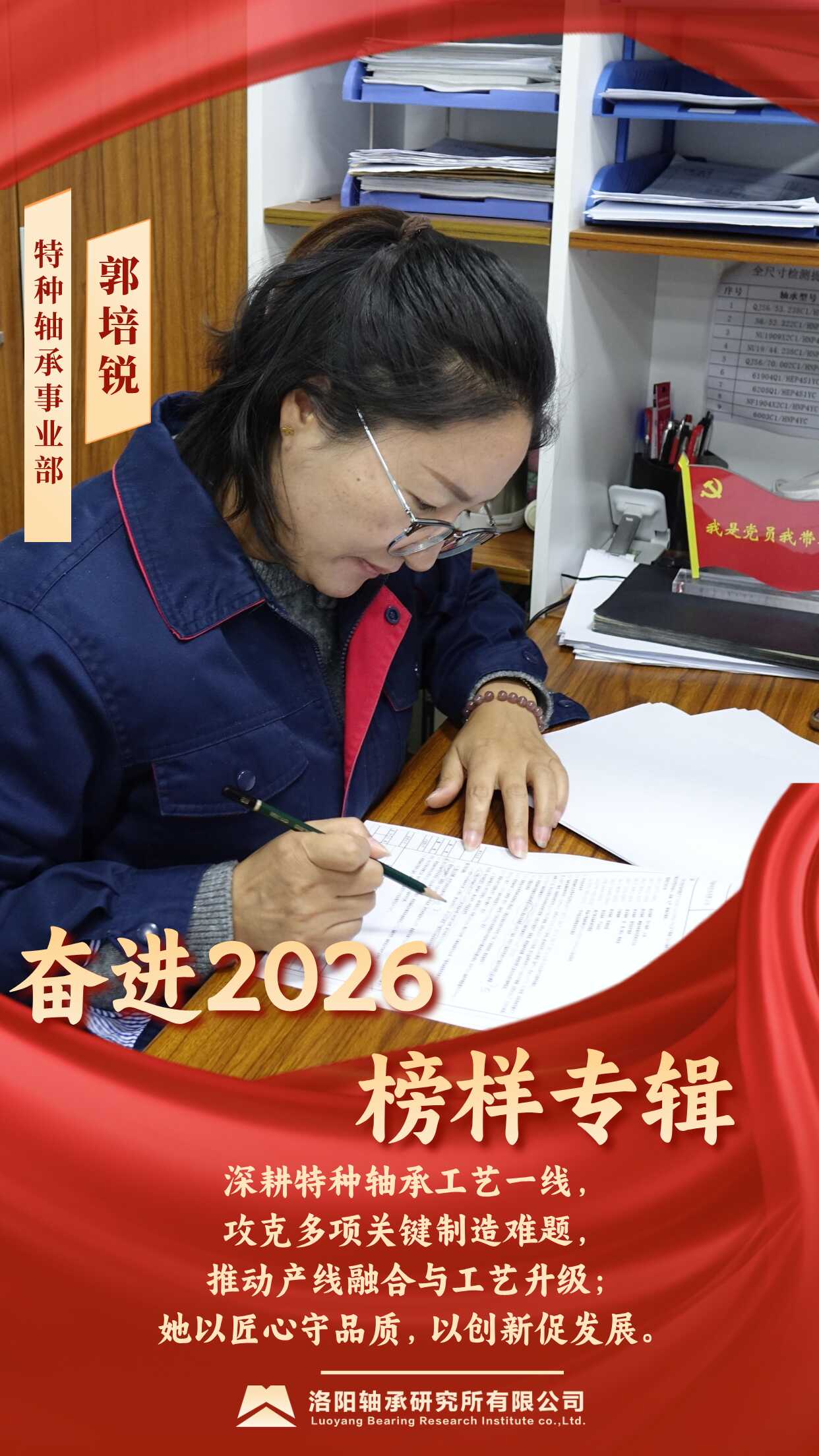郭培銳同志自2019年入職以來,一直從事特種軸承工藝技術(shù)研究工作,先后參與省部級項目5項、發(fā)表論文6篇并獲多項專利及軟著,2024年12月榮獲全國機械工業(yè)產(chǎn)品質(zhì)量創(chuàng)新大賽金獎。她擔任工藝技術(shù)室主任后,面對部門融合、任務(wù)倍增的挑戰(zhàn),主動擔當,牽頭完成237臺設(shè)備搬遷就位、36份制度文件融合、3300余份工藝優(yōu)化編制等項艱巨任務(wù),保障產(chǎn)線平穩(wěn)過渡。在質(zhì)量攻堅中,她帶領(lǐng)團隊完成63批次首件鑒定、處理現(xiàn)場問題400余個,攻克多項技術(shù)難題,并積極推進信息化建設(shè),為公司技術(shù)提升與穩(wěn)健發(fā)展筑牢堅實基礎(chǔ)。柔肩擔重任,巾幗綻芳華。她以匠心守品質(zhì),以創(chuàng)新促發(fā)展。