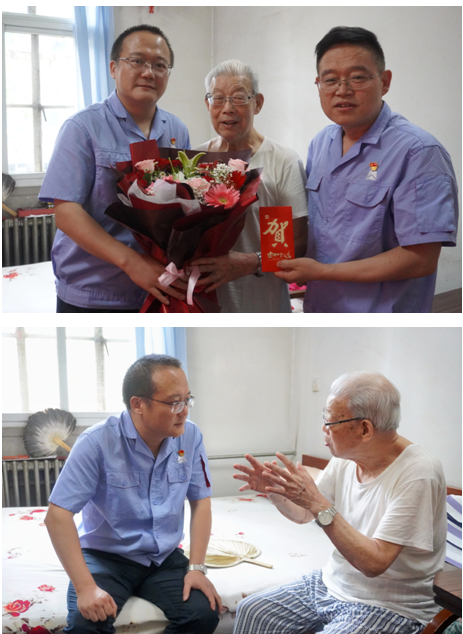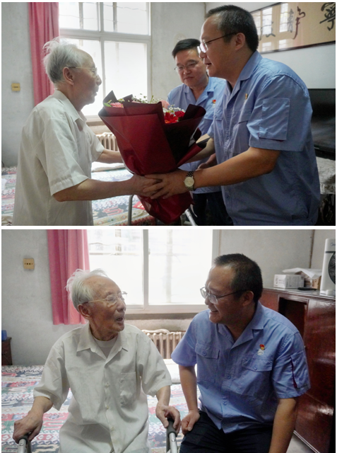 93歲的老黨員秦士豐和朱濱波,黨齡分別長達(dá)75年和76年,公司為他們送去慰問品和慰問金,向他們傳達(dá)關(guān)懷與溫暖,并致以節(jié)日的問候和祝福。在兩位老黨員家中,高元安仔細(xì)詢問了他們的身體、家庭及日常生活情況,并向他們介紹了公司近期的發(fā)展?fàn)顩r,對他們?yōu)楣咀鞒龅呢暙I(xiàn)表示感謝,向他們終生投身黨的事業(yè)致以敬意。