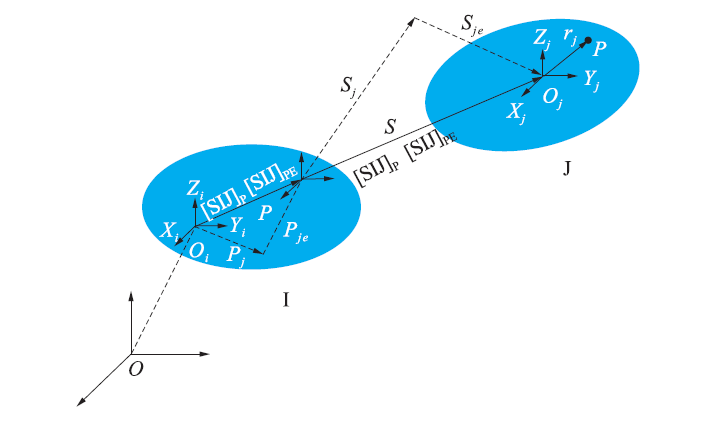 數(shù)控機(jī)床的主要誤差源包括零部件的制造誤差、關(guān)鍵零部件的裝配誤差、切削力產(chǎn)生的變形、主軸持續(xù)轉(zhuǎn)動引起的熱誤差以及控制誤差等。根據(jù)誤差的力學(xué)特性與動態(tài)特性,機(jī)床誤差通常分為靜態(tài)誤差與動態(tài)誤差。靜態(tài)誤差包含關(guān)鍵部件尺寸誤差和裝配體間的位姿誤差等。動態(tài)誤差主要包含各軸在運(yùn)動過程中產(chǎn)生的變形振動及熱誤差等。為反映機(jī)床誤差源與刀具位姿誤差的映射關(guān)系,通過誤差建模表達(dá)機(jī)床各運(yùn)動軸的空間位姿誤差。常用數(shù)學(xué)工具主要有旋量理論、指數(shù)積公式和四元法等,其中齊次坐標(biāo)變換法應(yīng)用最廣泛,其清晰的數(shù)學(xué)表達(dá)形式被廣泛應(yīng)用于機(jī)床的誤差建模。在誤差建模方面,已開展大量的研究工作,目前已研究出多種不同的運(yùn)動誤差數(shù)學(xué)模型建模方法,如幾何建模法、誤差矩陣法、機(jī)構(gòu)學(xué)建模法、剛體運(yùn)動學(xué)法和多體系統(tǒng)理論法等。Fan J.W.等基于多體系統(tǒng)運(yùn)動學(xué),通過構(gòu)造機(jī)床整機(jī)拓?fù)浣Y(jié)構(gòu)(其中相鄰體相對運(yùn)動如圖2所示)提出了一種通用的機(jī)床幾何誤差模型。Ding G.等基于多體系統(tǒng)理論和齊次坐標(biāo)變換建立了五軸外圓銑床的空間定位精度模型。Wu C.等基于多體系統(tǒng)理論和相對運(yùn)動約束方程,建立了五軸非正交數(shù)控機(jī)床的刀具位姿預(yù)測模型。