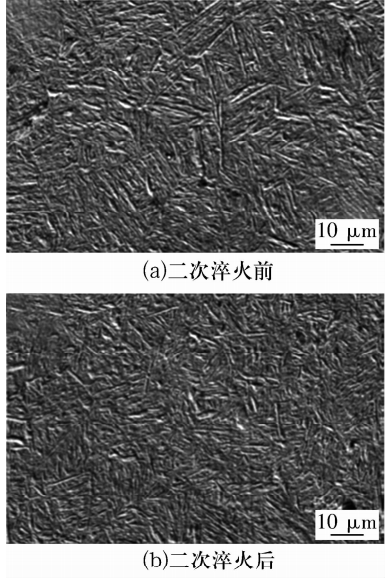 圖6 G20CrNi2Mo鋼二次淬火前、后的組織對(duì)比