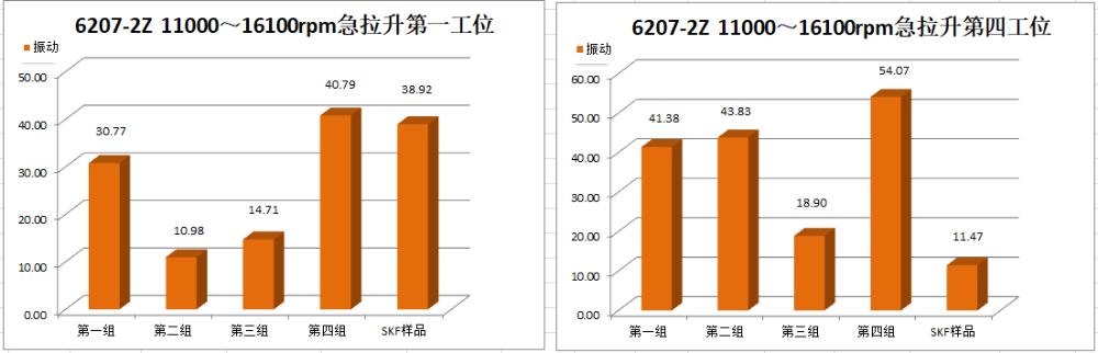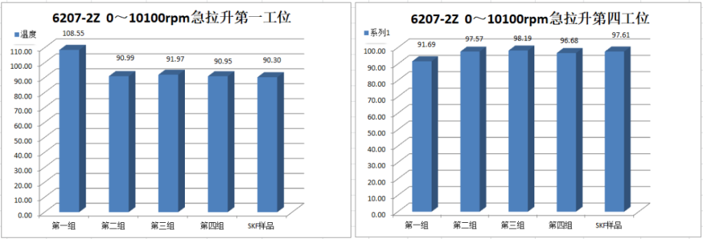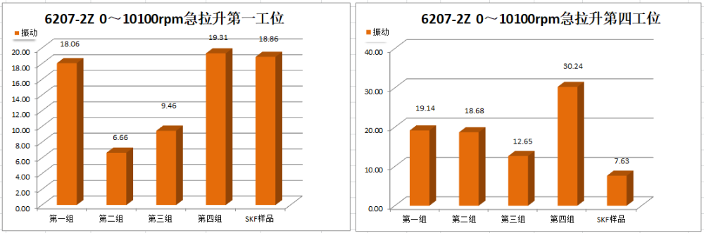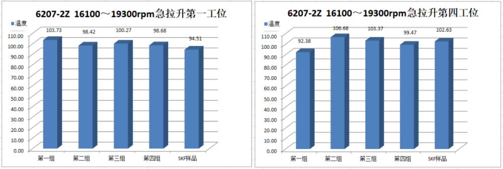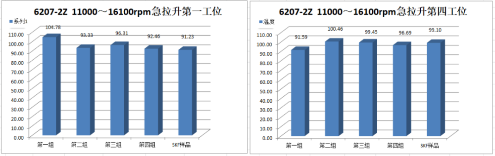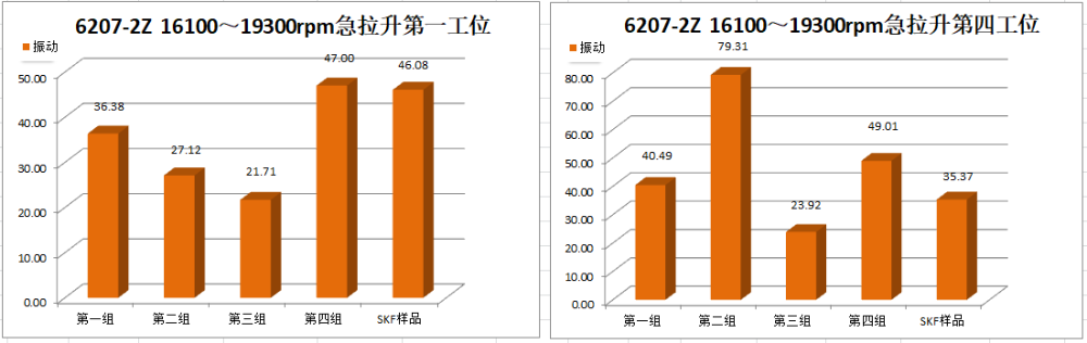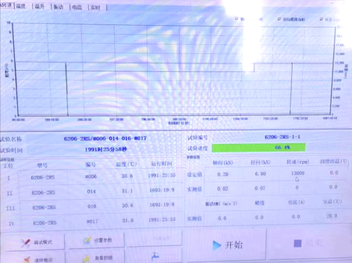 Ⅳ號工位軸承運行到18000r/min速度段2min后溫度報警停機,第二次運行到18000r/min速度段15min后溫度報警停機。