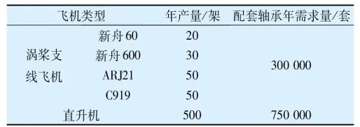 表2 我國(guó)民用飛機(jī)產(chǎn)量及相應(yīng)配套軸承需求量
